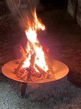 Ab etwa 17 Uhr entzünden wir die Feuerschale, um bei Punsch und Glühwein in geselliger Runde zusammen zu sein.